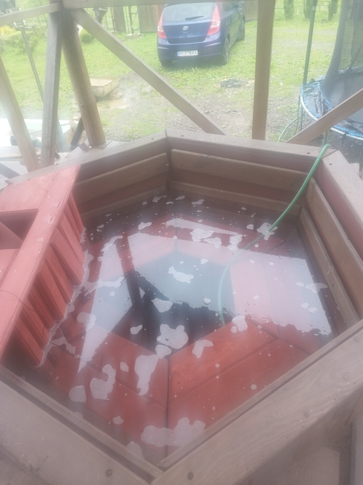 Є власна сауна і каркасний басейн на території, власні закарпатські чани.