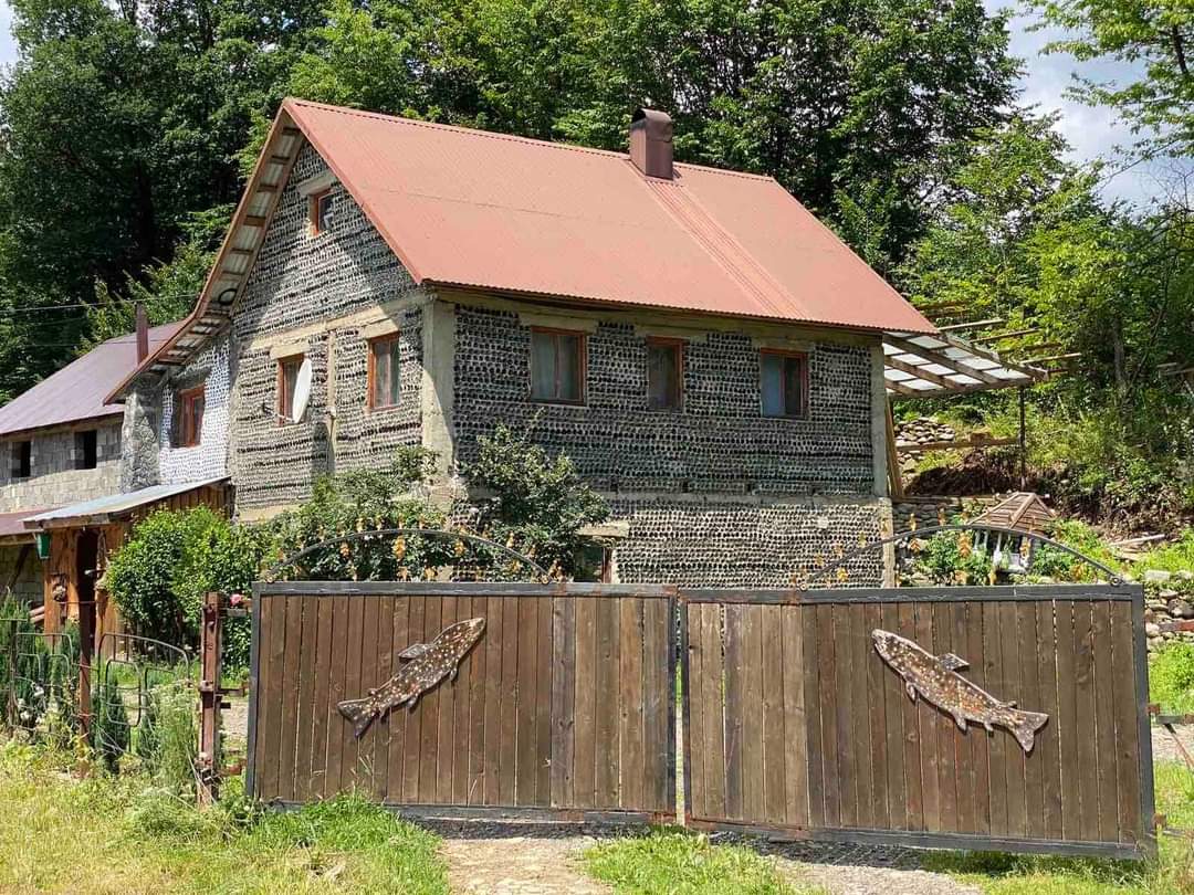 На території садиби розташований затишний двоповерховий котедж, побудований за унікальною технологію. Він зроблений з пляшок, замість цегли. Котедж може розмістити до 8 гостей.